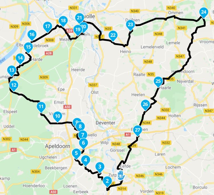 De route heeft een lengte van 208 km.